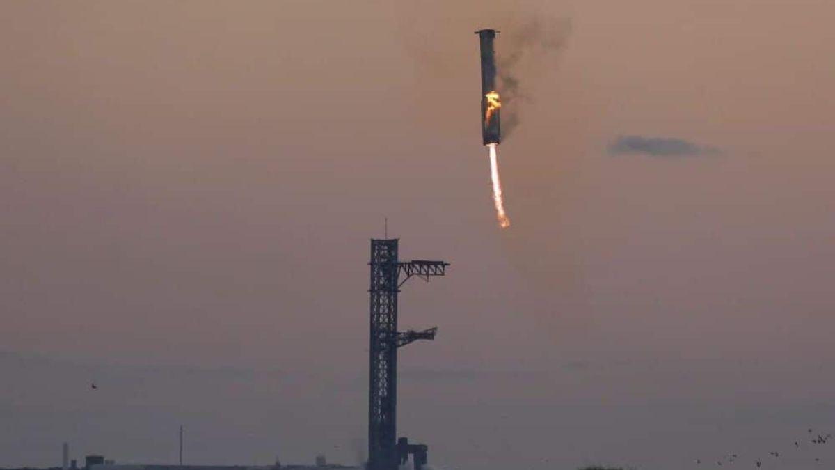 وكان قد أعاد المعزز تشغيل 3 من محركاته الـ33 من نوع “رابتور” لإبطاء نزوله، موجها نفسه نحو منصة الإطلاق باستخدام الزعانف الهوائية، في حين امتدت الأذرع العملاقة من البرج الذي يصل ارتفاعه أكثر من 120 مترا، منتظرة الصاروخ المعزز لتلتقطه في مناورة دقيقة وغير مسبوقة.