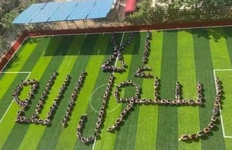 ونشرت وسائل إعلام محلية بمصر أمس الثلاثاء، صورا لطلاب مسيحيين يشاركون زملاءهم المسلمين في رسم عبارة “إلا رسول الله” بأجسادهم داخل ملعب بإحدى المدارس في محافظة الإسكندرية.