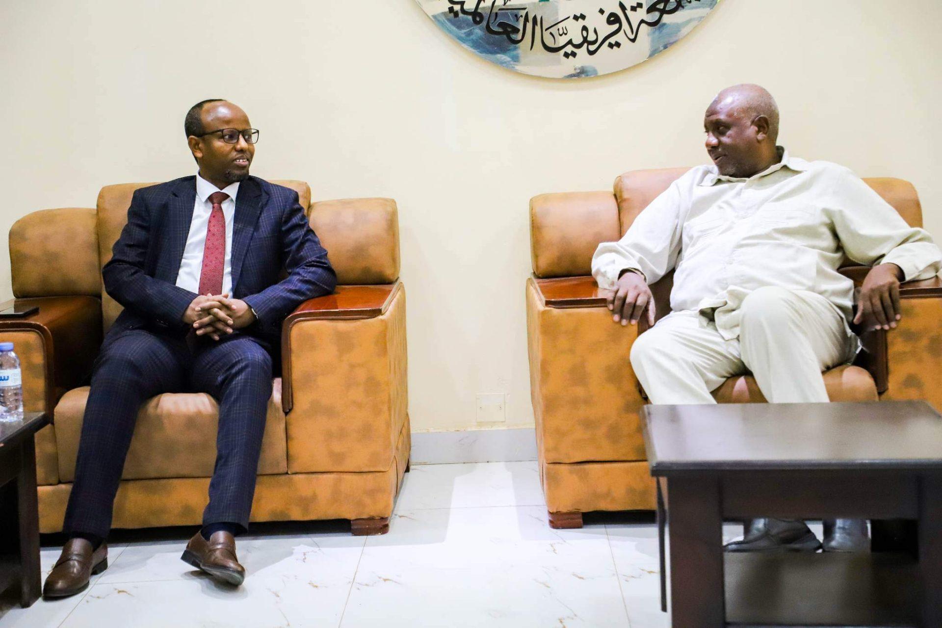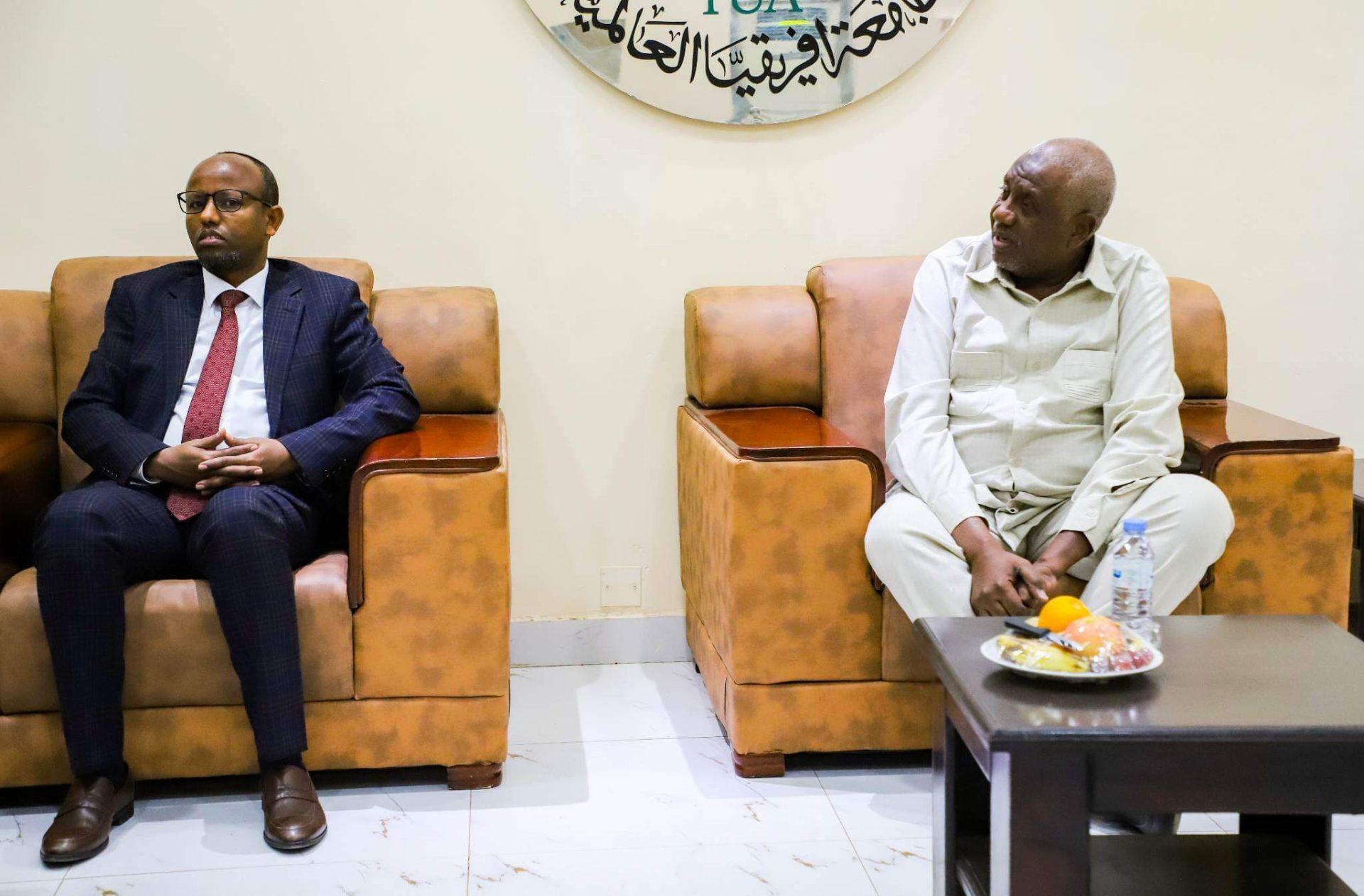 أفريقيا برس – الصومال. زار وزير الصحة ورعاية المجتمع في الحكومة الفيدرالية، السيد علي حاج آدم يرافقه سفير الجمهورية لدى الخرطوم سعادة محمد شيخ اسحاق، اليوم، مبنى مقر جامعة إفريقيا العالمية.