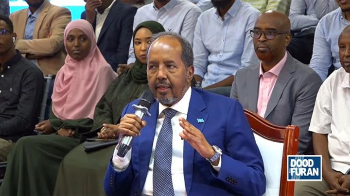 أفريقيا برس – الصومال. عقد رئيس جمهورية الصومال الفيدرالية، حسن شيخ محمود، مساء أمس، جلسة عامة للإجابة عن أسئلة المواطنين، ناقش فيها عدة قضايا تتعلق بإنجازات حكومته منذ انتخابه رئيسا للجمهورية في مايو من العام الماضي.