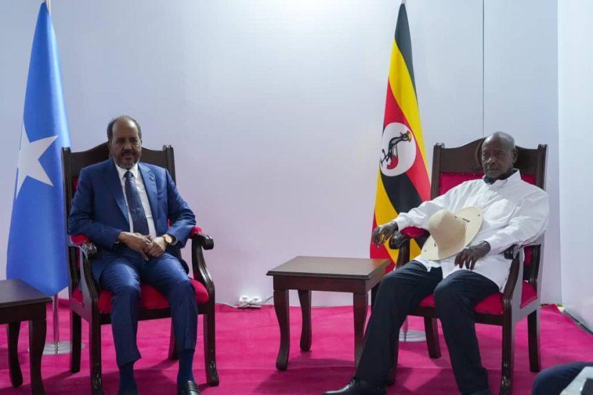 الرئيس حسن شيخ يلتقي نظيريه الأوغندي والكيني على هامش قمة مجموعة شرق أفريقيا في أروشا