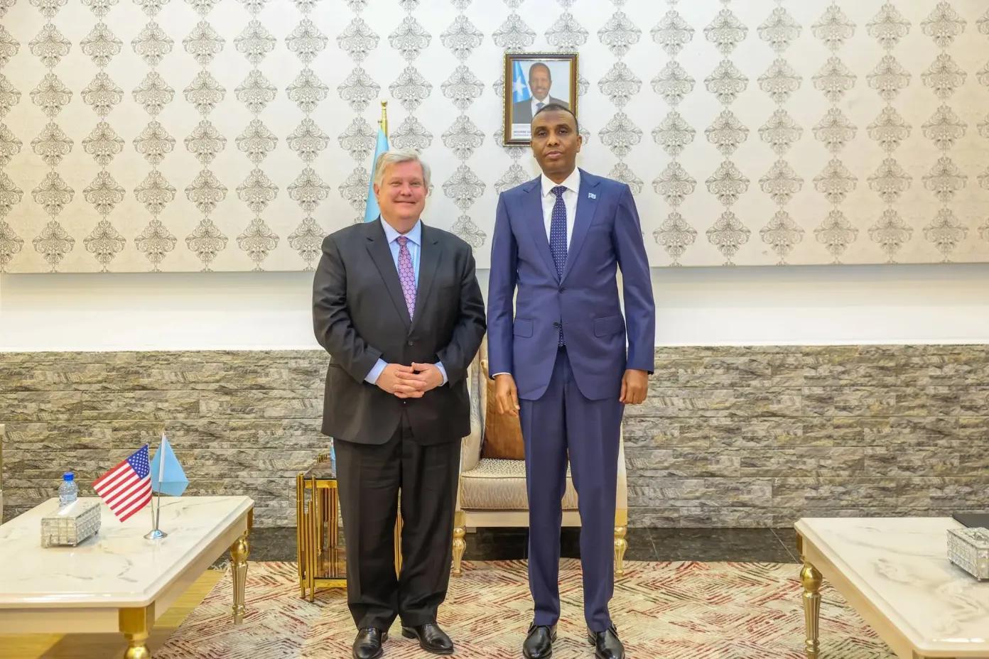 أفريقيا برس – الصومال. عقد رئيس الوزراء الحكومة الفيدرالية الصومالية، حمزة عبدي بري، لقاء مع سفير الولايات المتحدة الأمريكية الجديد لدى الصومال ريتشارد رايلي.