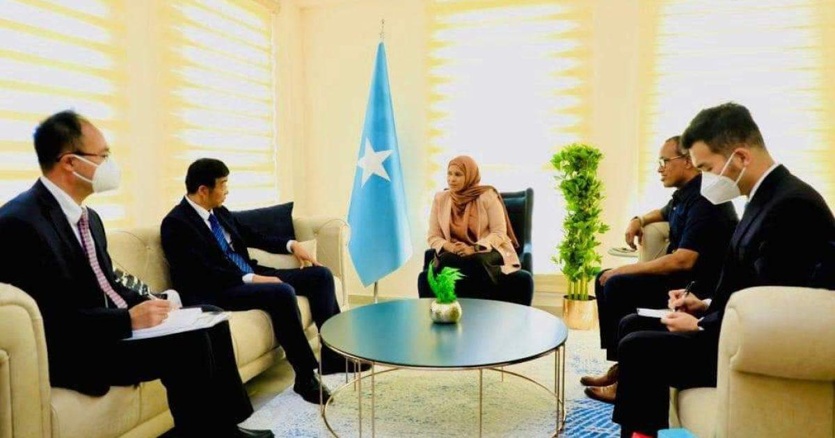أفريقيا برس – الصومال. استقبلت وزيرة النقل والطيران المدني في الحكومة الفيدرالية الصومالية فردوسة عثمان أمس الأحد في مكتبها السفير الصيني لدى الصومال في شنغشاو.