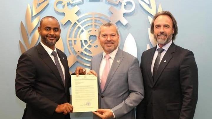 أودع وزير الموانئ والنقل البحري الصومالي، عبد القادر محمد نور، وثيقة الانضمام خلال اجتماع مع الأمين العام للمنظمة البحرية الدولية، أرسينيو دومينغيز. وتم التسليم على هامش الدورة العادية الرابعة والثلاثين لجمعية المنظمة البحرية الدولية في لندن.