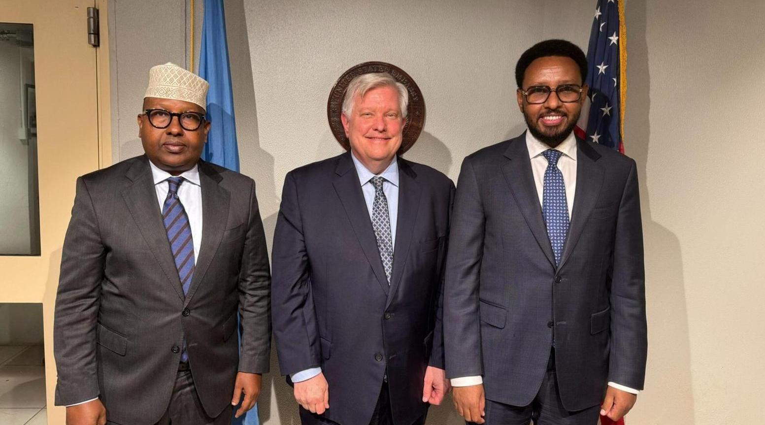 التقى السفير ريتشارد رايلي بوزير الدفاع الصومالي، أحمد معلم فقي، ووزير المالية، بيحي إيمان عغه، لإجراء مناقشات تمحورت حول “تعزيز التعاون ضد حركة الشباب وداعش”.