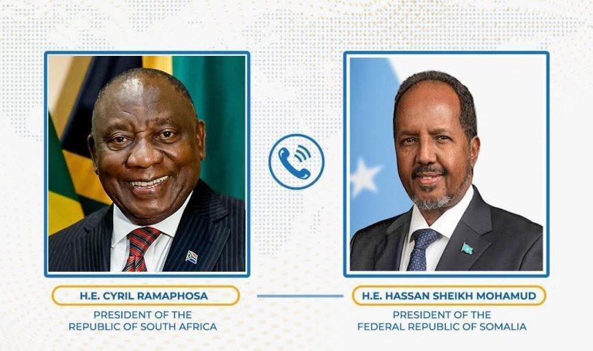 أفريقيا برس – الصومال. أجرى الرئيس الصومالي حسن شيخ محمود، يوم الثلاثاء، اتصالا هاتفيا مع رئيس جنوب أفريقيا سيريل رامافوزا، ركّز خلاله على سبل تعميق العلاقات الثنائية وتوسيع نطاق التعاون بين البلدين في القطاعات الرئيسية.