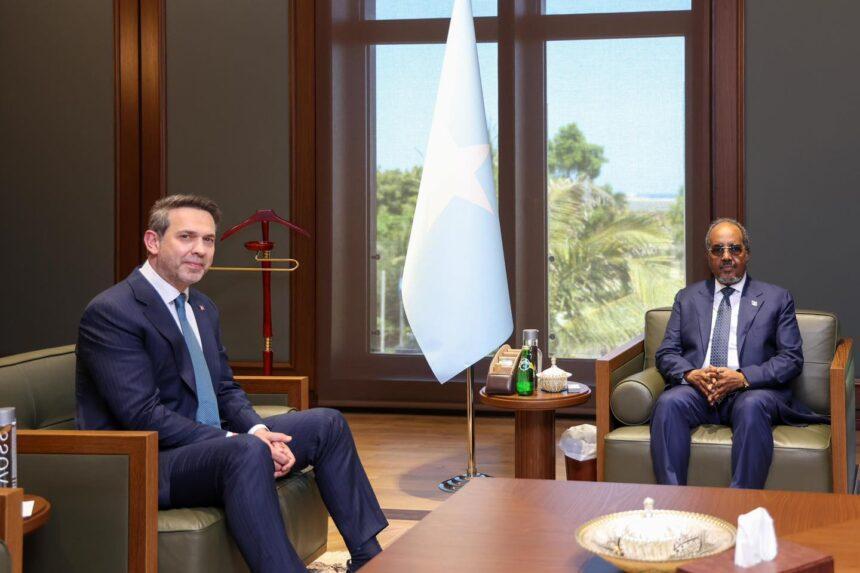 أفريقيا برس – الصومال. استقبل رئيس جمهورية الصومال الفيدرالية، فخامة الدكتور حسن شيخ محمود، اليوم في القصر الوطني، وزير الطاقة والموارد الطبيعية في تركيا، ألب أرسلان بيرقدار، حيث بحث الجانبان سبل تعزيز التعاون الثنائي، لا سيما في مجالات الطاقة والموارد الطبيعية والاقتصاد الأزرق.