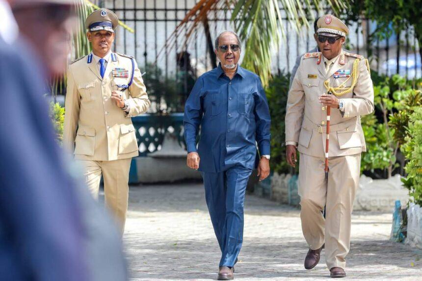 وتلقى حسن شيخ سلام ترحيبي من وحدات من القوات المسلحة الوطنية التي جابت بعض شوراع العاصمة في إستعراض عسكري مهيب.