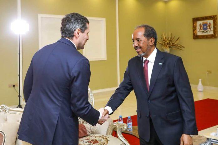 أفريقيا برس – الصومال. استقبل رئيس الجمهورية الدكتور حسن شيخ محمود، مساء أمس الخميس ، في مكتبه بالقصر الرئاسي، وفداً من الحكومة الإيطالية، برئاسة عضو لجنة الدفاع بالبرلمان الإيطالي ، السيد ماتيو بيريجو، التي يقوم حاليا بزيارة إلى البلاد.