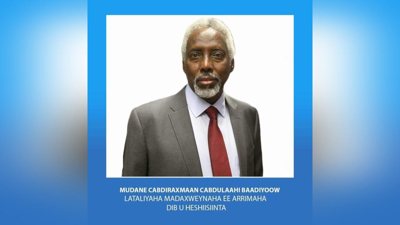 أفريقيا برس – الصومال. عين رئيس الجمهورية حسن شيخ محمود، في مرسوم له اليوم، عبدالرحمن عبدالله معلم باديو، مستشاراً له لشؤون المصالحة الوطني الذي يعد أحد أولويات حكومة جمهورية الصومال الفيدرالية.