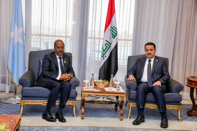 أفريقيا برس – الصومال. التقى رئيس الجمهورية حسن شيخ محمود، اليوم الجمعة، رئيس مجلس الوزراء العراقي، محمد شياع السوداني، وذلك على هامش المشاركة في القمة العربية بدورتها الـ(32)، التي تستضيفها المملكة العربية السعودية.