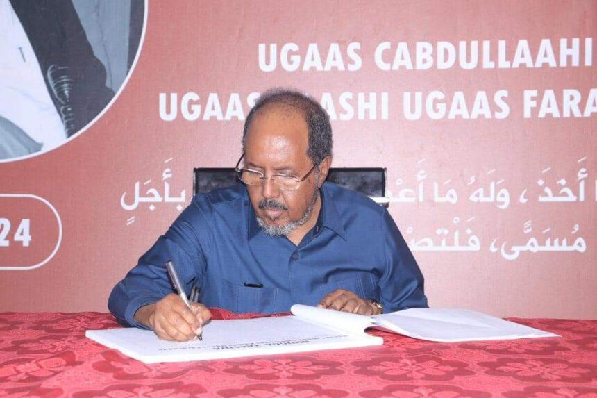 أفريقيا برس – الصومال. قدم رئيس الجمهورية، حسن شيخ محمود، تعازيه الحارة لأسرة وأقارب الراحل أوغاس عبد الله أوغاس حاشي، خلال زيارته لمنزل الجنرال عبدالله جافو بعد ظهر اليوم.