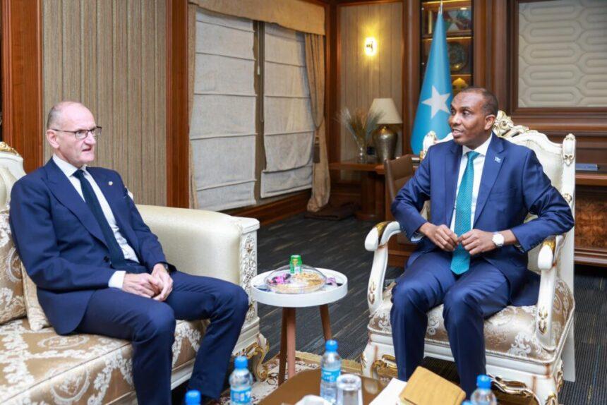 أفريقيا برس – الصومال. استقبل رئيس الوزراء حمزة عبدي بري، اليوم في مكتبه، سفير المملكة المتحدة الجديد لدى الصومال مايكل نيثافرياناكيس.