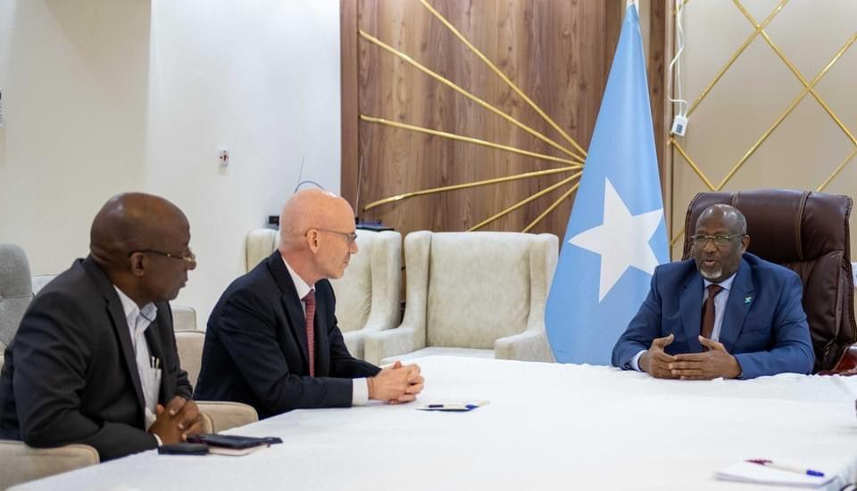 أفريقيا برس – الصومال. اجتمع رئيس مجلس الشعب الفيدرالي، شيخ آدم محمد نور مدوبي، اليوم السبت، في مكتبه، مع الممثل الخاص للأمم المتحدة لدى البلاد سعادة جيمس اسوان.