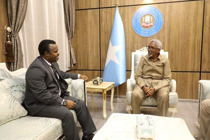 أفريقيا برس – الصومال. استقبل رئيس مجلس الشيوخ بالبرلمان الفيدرالي، السيد عبدي حاشي عبد الله، في مكتبه اليوم الأحد، سفير دولة إثيوبيا الجديد لدى الصومال السيد مختار محمد واري.