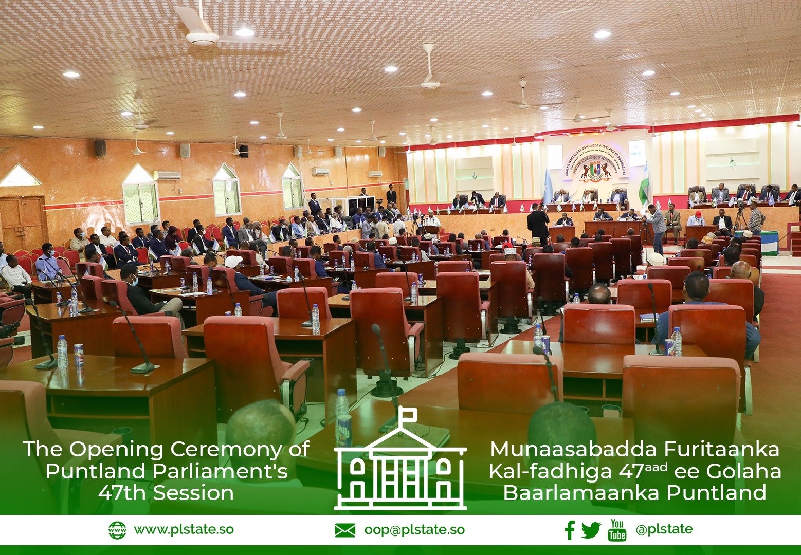 الصومال – افريقيا برس. أفتتح رئيس ولاية بونتلاند السيد سعيد عبدالله دني ،اليوم الأحد ،أعمال الدورة الـ47 لبرلمان الولاية ،وذلك في مدينة غروي عاصمة الولاية.