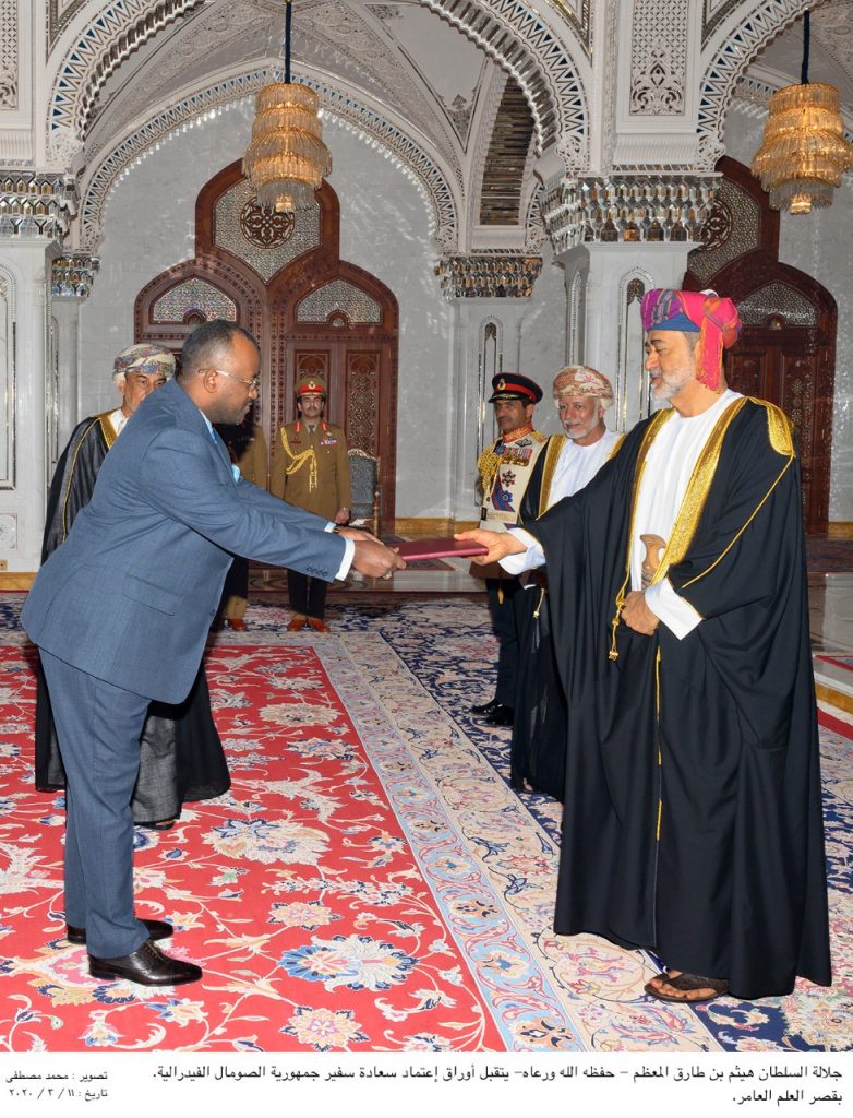 مسقط 18 رجب 1441 – الموافق 13 مارس 2020 (صونا) – قدم سعاد عبدالولي علي أحمد (جيلاني) سفير الجمهورية الجديدة لدى سلطنة عُمان أوراق اعتماده إلى السلطان هيثم بن طارق بن تيمور.