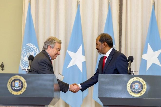 وفي وقت سابق اليوم، أجرى غوتيريش محادثات مع الرئيس الصومالي بالقصر الرئاسي بالعاصمة مقديشو، في إطار زيارة وصفها القصر بالتاريخية.