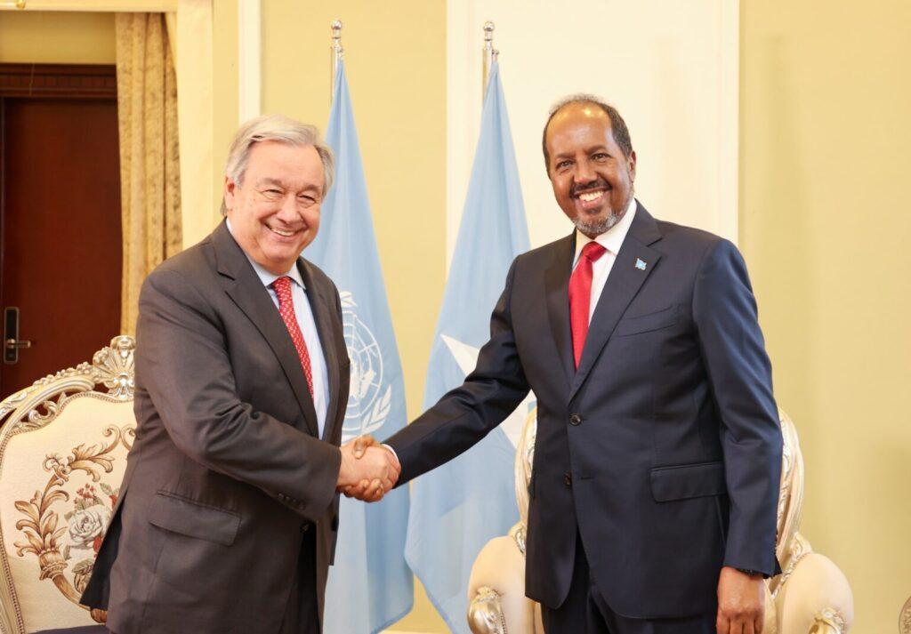 وقال غوتيريش في مؤتمر صحفي مشترك مع الرئيس حسن شيخ محمود: “أنا هنا لأدق ناقوس الخطر بشأن الحاجة إلى دعم دولي كثيف هائل بسبب الصعوبات الإنسانية التي يواجهها هذا البلد.