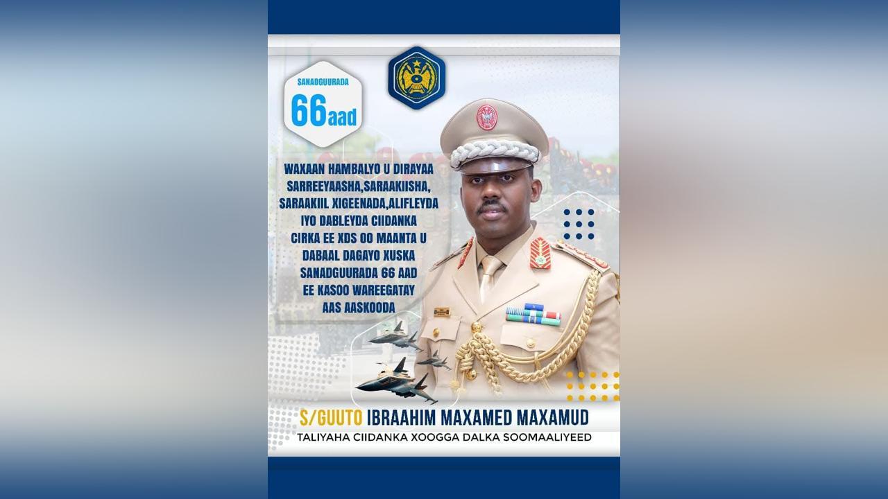 أفريقيا برس – الصومال. هنا قائد الجيش الوطني العميد إبراهيم محمد محمود، القوات الجوية بمناسبة ذكرى التأسيس الـ66.