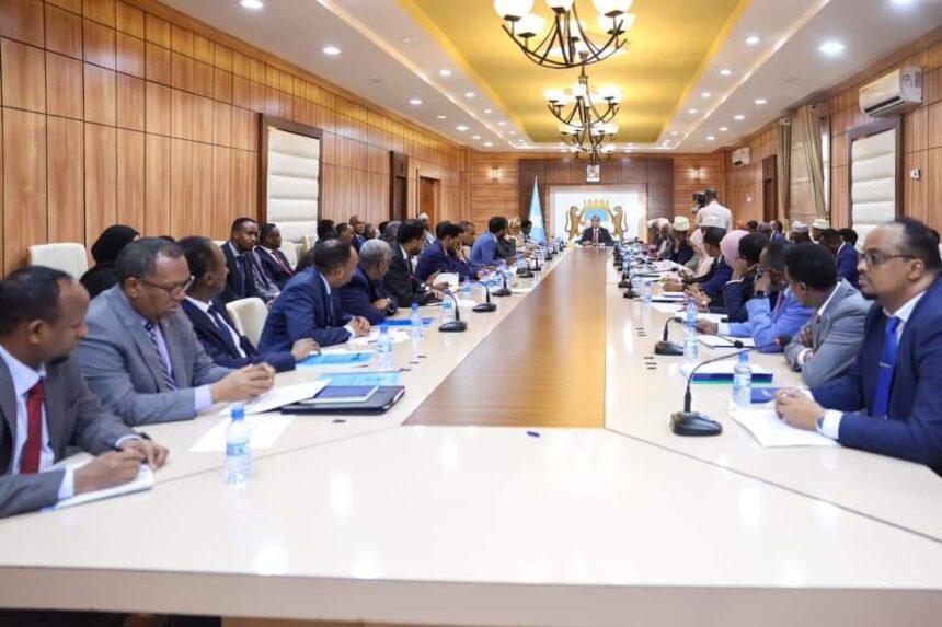 وأعلن المتحدث باسم الحكومة الفدرالية فرحان جمعالي، في مؤتمر صحافي عقب الجلسة الأسبوعية لمجلس الحكومة الفدرالية برئاسة رئيس الوزراء حمزة عبدي بري، أن الحكومة ستشرع في تطبيق بنود مقررات الاجتماع التشاوري الذي انعقد في 27 مايو/أيار بين رؤساء الولايات الفدرالية والحكومة الصومالية بخصوص تنظيم الانتخابات المباشرة.