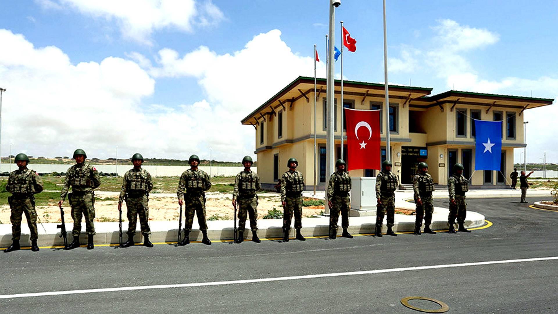 عسكرياً، افتتحت تركيا معسكر “تركسوم” الذي تحول إلى أكبر قاعدة عسكرية تركية موجودة خارج حدودها في أيلول سنة 2017، وهو يغطي مساحة 400 هكتار من الأراضي الصومالية، يستطيع العسكريون الأتراك المتمركزون هناك، الذين يصل عددهم إلى مائتين، تدريب 1500 جندي صومالي في كل دورة. ومن أهداف القاعدة التركية، الترويج للصناعات العسكرية التركية، وتحويلها إلى قاعدة مبيعات في شرق أفريقيا، كما تسعى من خلالها لتحديد مناطق نفوذها الاستراتيجي المستقبلي، وإخضاع الحكومات لنفوذها ومشاريعها، إضافة إلى تطلّعها للقيام بدور عسكري في المنطقة (مكافحة القرصنة، الحرب على اليمن، مكافحة الإرهاب). وتعمل تركيا على فرض نفوذها العسكري والأمني في الصومال من خلال عدة أدوات أخرى، من أبرزها: تقوية أجهزة الأمن والجيش والشرطة، وتدريب عناصرها داخل تركيا، والإسهام في إعادة تشكيل الجيش الصومالي والأجهزة الأمنية، وتدريب عناصرهما، وتوفير التجهيزات اللازمة، ووضع حجر الأساس لمصنع الملابس العسكرية بتمويل كامل من الحكومة التركية في كانون الثاني 2016.