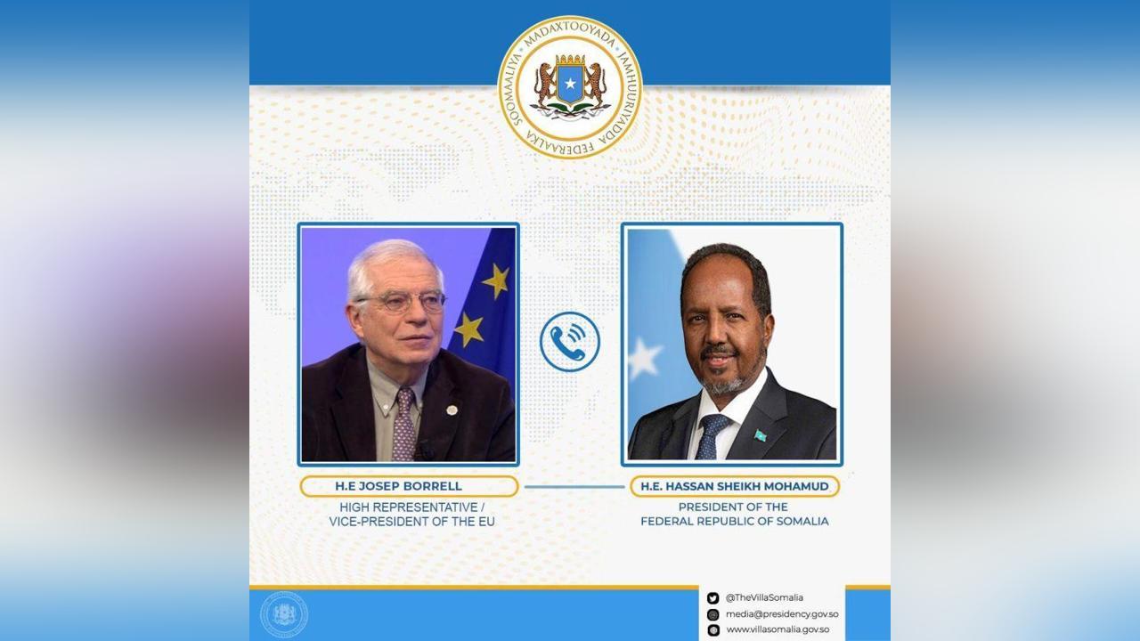أفريقيا برس – الصومال. أجرى رئيس جمهورية الصومال الفيدرالية حسن شيخ محمود، مكالمة هاتفية مع الممثل الأعلى للاتحاد الأوروبي للشؤون الخارجية والسياسة الأمنية، جوزيب بوريل.
