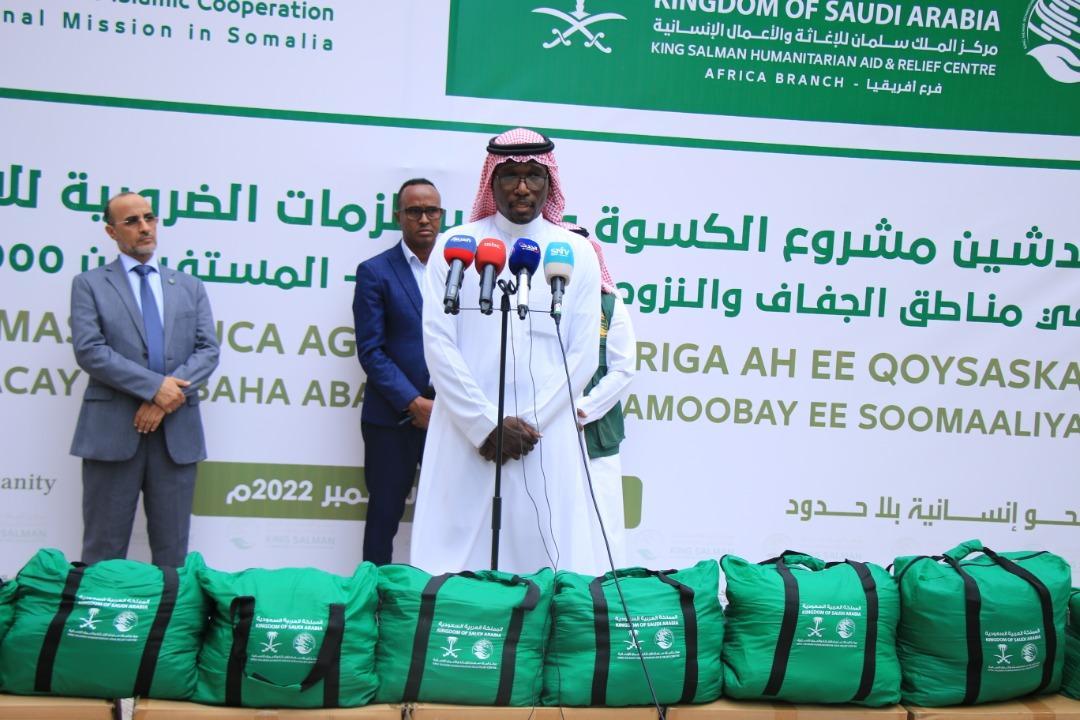 من جانبه أشار مدير فرع مركز الملك سلمان للإغاثة والأعمال الانسانية في افريقيا إلى أن مشروع الكسوة والمواد الغذائية المخصصة للنازحين المتضررين يأتي بالتنسيق والتعاون مع الشريك المنفذ منظمة التعاون الاسلامي والهيئة الوطنية لشؤون النازحين وادارة الكوارث بجمهورية الصومال الفيدرالية.
