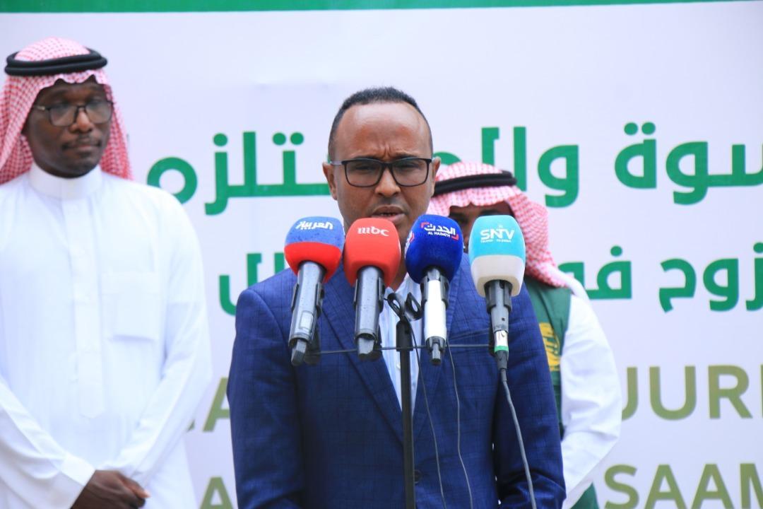 وفي كلمته الافتتاحية أشار المدير العام للبعثة الاقليمية لمنظمة التعاون الاسلامي سعادة السفير محمد بمبه محمد بوبه إلى أن هذا المشروع من ضمن سلسلة مشاريع يمولها مركز الملك سلمان للإغاثة والأعمال الإنسانية وتنفذها منظمة التعاون الاسلامي، و شكر حكومة المملكة العربية السعوديه ومركز الملك سلمان على جهودهما المقدرة لمساعدة الشعب الصومالي.