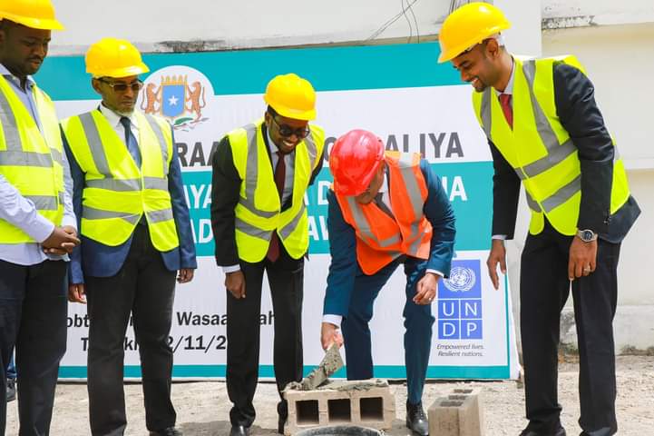 الصومال – افريقيا برس. قام نائب رئيس مجلس الوزراء في الحكومة الفيدرالية، معالي مهدي محمد غوليد، اليوم الإثنين، بوضع حجر الأساس لإعادة إعمار وترميم مبنى وزراتي العدل والأوقاف والشؤون الدينية.