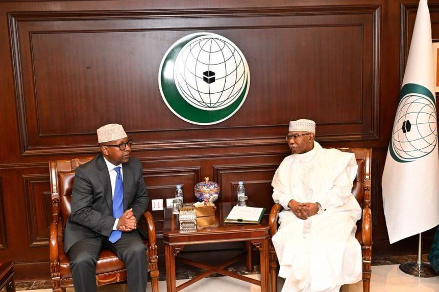 وناقش الوزير الصومالي على هامش الاجتماع مع الأمين العام لمنظمة التعاون الإسلامي، حسين إبراهيم طه، سبل تعزيز التعاون والتنسيق.