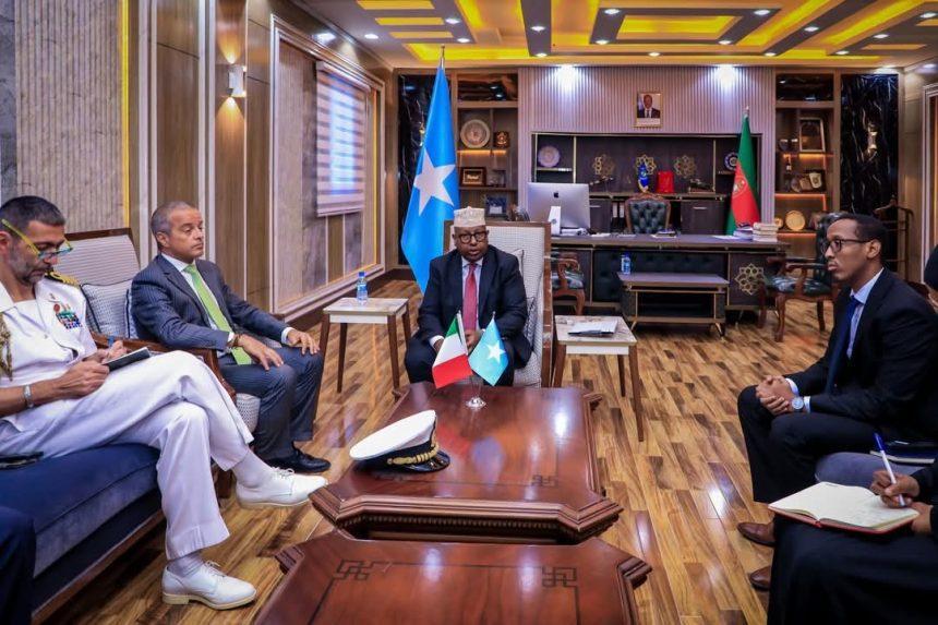 أفريقيا برس – الصومال. استقبل وزير الدفاع في الحكومة الفيدرالية الصومالية، السيد أحمد معلم فقي، اليوم، سفير إيطاليا لدى الصومال، السيد بير داكو كوبي، في مكتبه بمقديشو.