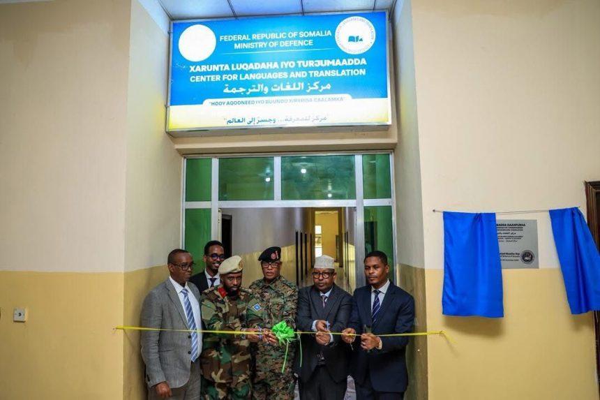 أفريقيا برس – الصومال. افتتح وزير الدفاع أحمد معلم فقي، اليوم، مركز اللغات والترجمة في مقر وزارة الدفاع، بحضور مساعد قائد الجيش الوطني العميد مادي نور شيخ أوفورو، ونائب وزير الدفاع السابق البرلماني عبد الفتاح قاسم، وعدد من أعضاء البرلمان ومسؤولي الوزارة والقيادة العسكرية.