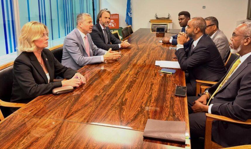 وناقش الجانبان خلال الاجتماع سبل تعزيز التعاون بما يسهم في دعم أمن السواحل الصومالية، والجهود التي تبذلها الحكومة لتحديث المؤسسات البحرية، وتعزيز القوانين، وحماية السواحل الوطنية.