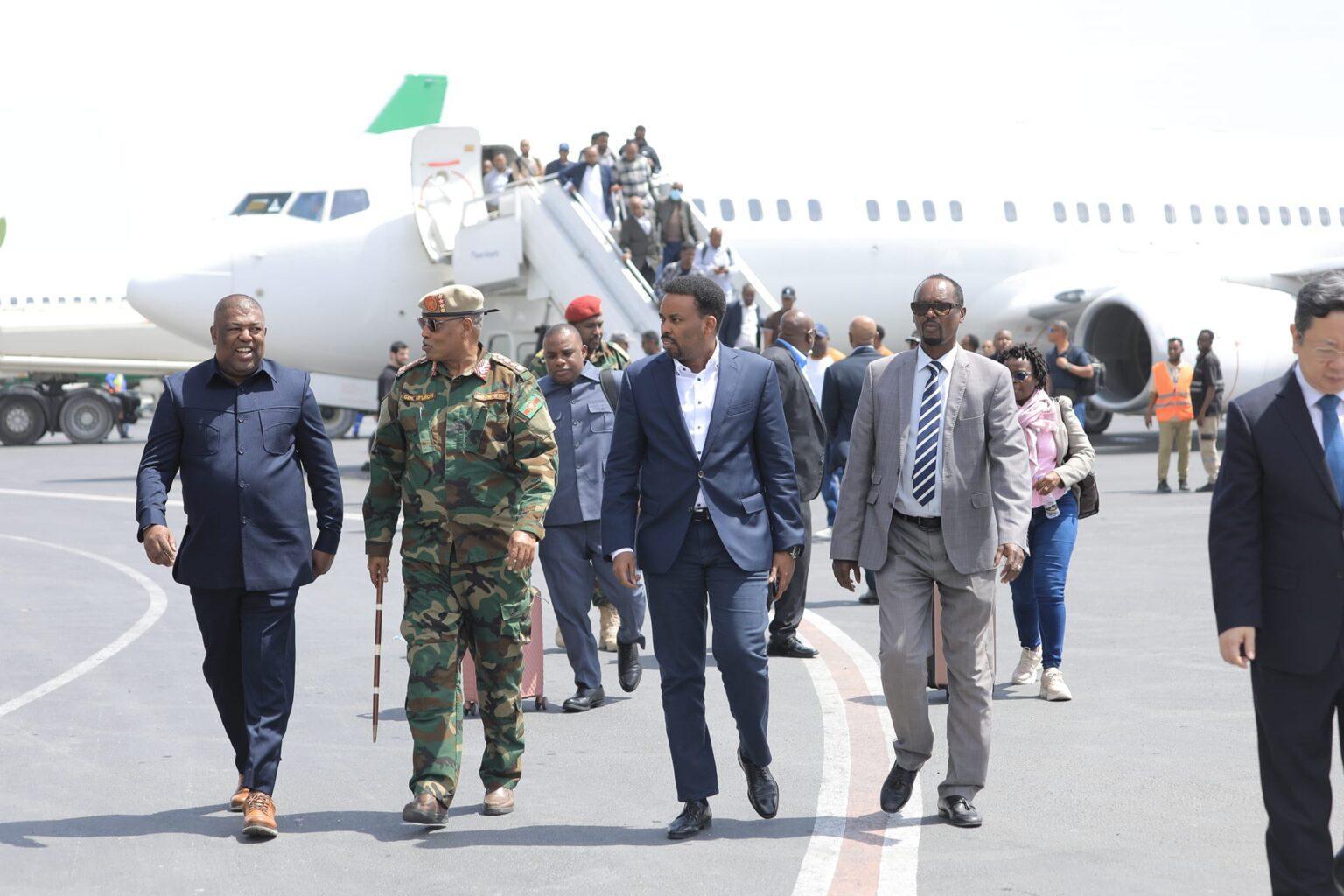 ورحب بالوفد في مطار آدم عدي الدولي في مقديشو، سفير الصومال لدى تنزانيا، إلياس علي حسن ونائب قائد الجيش الوطني، مادي نوري شيخ أفورو.