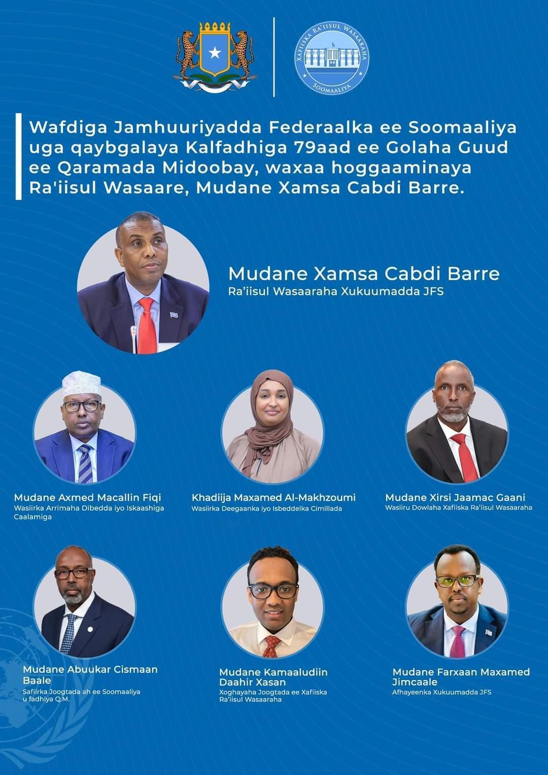 أفريقيا برس – الصومال. من المقرر أن يقود رئيس وزراء جمهورية الصومال الفيدرالية حمزة عبدي بري وفدا رفيع المستوى إلى مدينة نيويورك هذا الأسبوع للمشاركة في الدورة التاسعة والسبعين للجمعية العامة للأمم المتحدة.