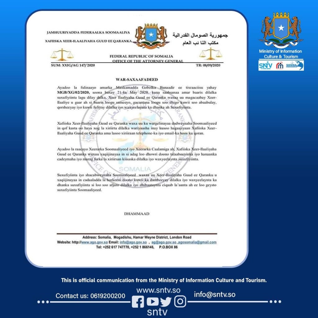 الصومال – افريقيا برس. عين النائب العام للدولة السيد سليمان محمد محمود مدعيا خاصا للتحقيق في مقتل الصحفيين، مما سيسهل تقديم المتورطين في جرائم ضد الصحفيين الصوماليين إلى العدالة.