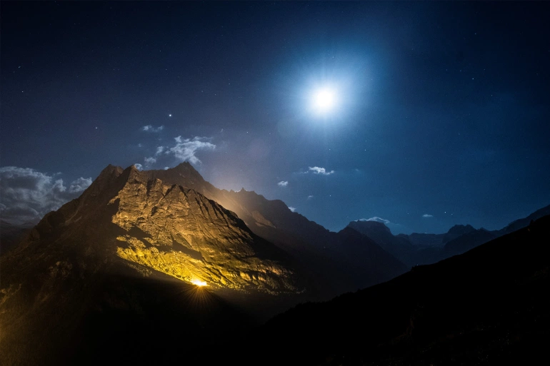 وقال جاك مورار منظم العرض “الأمر أشبه بإضاءة 100 مليون شمعة على الجبال، وهو ما يمنحها وهجا دافئا محببا”.