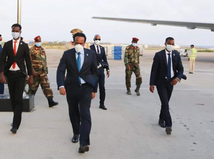 الصومال – افريقيا برس. مقديشو 25 شوال 1441 هـ – الموافق16 يونيو 2020 م (صونا) – عاد رئيس الجمهورية فخامة محمد عبدالله فرماجو،والوفد المرافق له ،مساء أمس الإثنين ،إلى أرض الوطن ،بعد مشاركته في أعمال مؤتمر المصالحة بين الحكومة الفيدرالية وإدارة أرض الصومال في جيبوتي.
