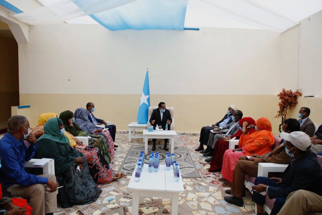الصومال – افريقيا برس. طوسمريب 29 ذو القعدة 1441 هـ – الموافق20 يوليو 2020 م (صونا) _ اجتمع فخامة رئيس الجمهورية محمد عبد الله فرماجو مع قادة مكونات المجتمع المدني، وذلك في مدينة طوسمريب حاضرة ولاية غلمدغ التي تستضيف قمة الدولة الفيدرالية والحكومات الأعضاء.