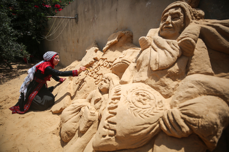وتابعت: “رسالتي اليوم من المنحوتة مليئة بالإنسانية. نحن -اللاجئين الفلسطينيين واللاجئين حول العالم أيضا- نحلم بالعودة إلى أوطاننا وأراضينا التي هجرنا منها”.