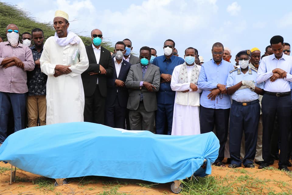 وحضر مراسم تشييع جنازة المرحوم إلى مثوه الأخير وزير الخارجية والتعاون الدولي ،وزير الأمن الداخلي ،وزير الإعلام ،نواب في البرلمان الفيدرالي ،محافظ محافظة بنادر وعمدة بلدية مقديشو ،بالإضافة إلى مسؤولين آخرين.