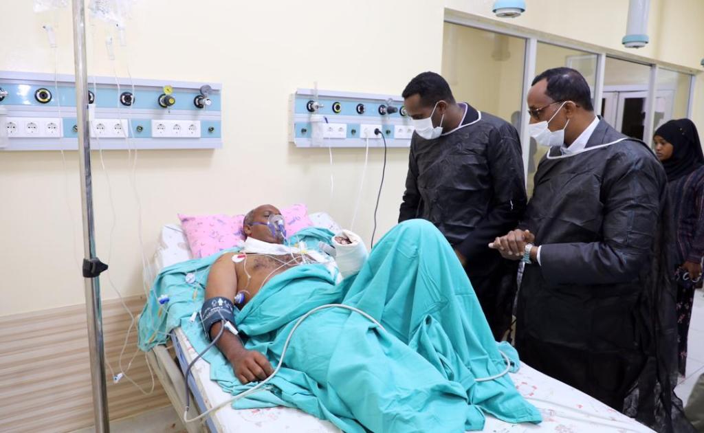 الصومال – افريقيا برس. تفقد نائب محافظ بنادر للشؤون المالية والإدارية السيد أحمد حسن إيمان ،اليوم الإثنين مصابي التفجير الإرهابي الذي وقع أمس فندق “إليت” المطل على شاطئ ليدو بالعاصمة مقديشو.