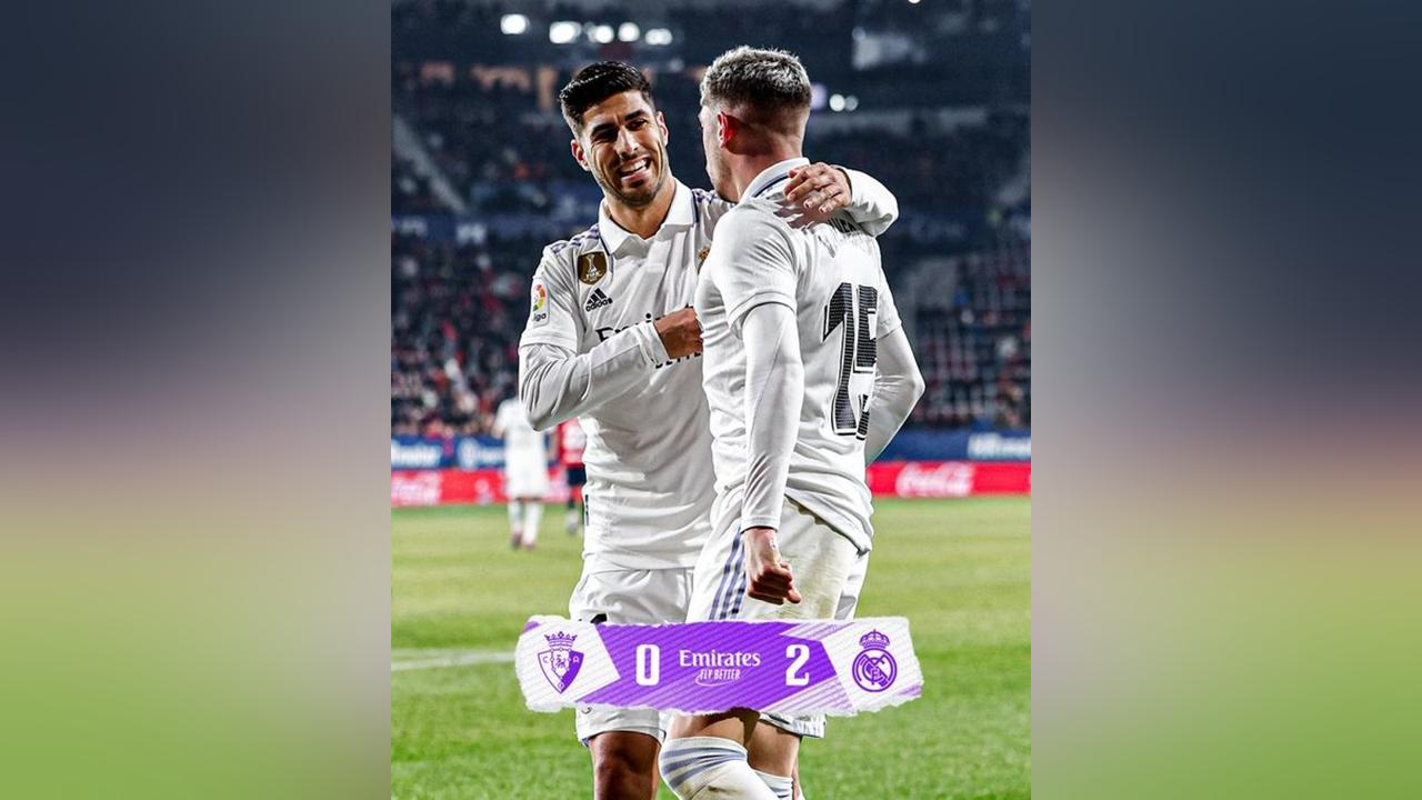وسجل ثنائية ريال مدريد كل من فيديريكو فالفيردي في الدقيقة (78) وماركو أسينسيو ( 90 ز1).