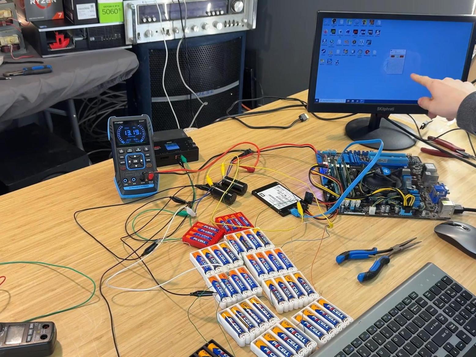 يوتوبر يشغل حاسوب مكتبي ببطاريات تقليدية