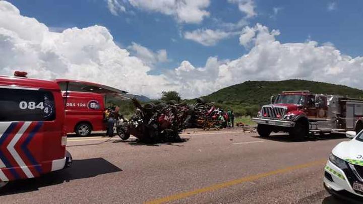 On closer inspection of the wreckage, paramedics found that two adults and four children in the bakkie had already died of their numerous injuries.