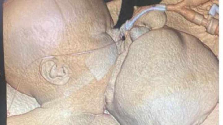 At 35 weeks pregnant, doctors delivered the baby half way to perform the procedure to create an airway in order to insert tubes for the baby to breathe.