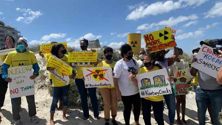 Africa-Press – South-Africa. Cape Town – The Koeberg Alert Alliance (KAA) and the Southern African Faith Communities Environment Institute (Safcei), together with concerned Capetonians gathered on Bloubergstrand Beach for an anti-nuclear protest to question the safety of the nearby nuclear plant operated by Eskom.