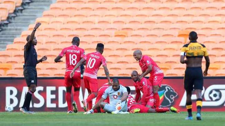 A mix-up at the back, with five minutes before stoppage time, saw Eric Mathoho flick the ball towards his own goal. But that shot was intercepted by substitute Bienvenu Eva Nga who beat goalkeeper Itumeleng Khune with a high-flying lobbed effort.