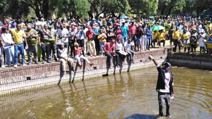 ’’Today, in front of the courts in Bloemfontein large numbers of ANC supporters of the Magashule faction blatantly defy lockdown regulations relating to the ban on all political meetings, social distancing and the wearing of masks in public.